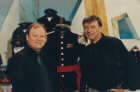 Guttorm Alvsaker viser fram gamle uniformer. Til høyre programleder Kjell Fuglehaug (Foto: Truls Løtvedt)