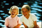 Lotta og søsteren Mia koser seg ved sjøen.