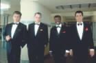 ![]() "The rat pack" representert ved f.v. Peter Lawford (Angus Macfayden), Frank Sinatra (Ray Liotta), Sammy Davis Jr. (Don Cheadle) og Dean Martin (Joe Mantegna). (Foto: Warner bros) |